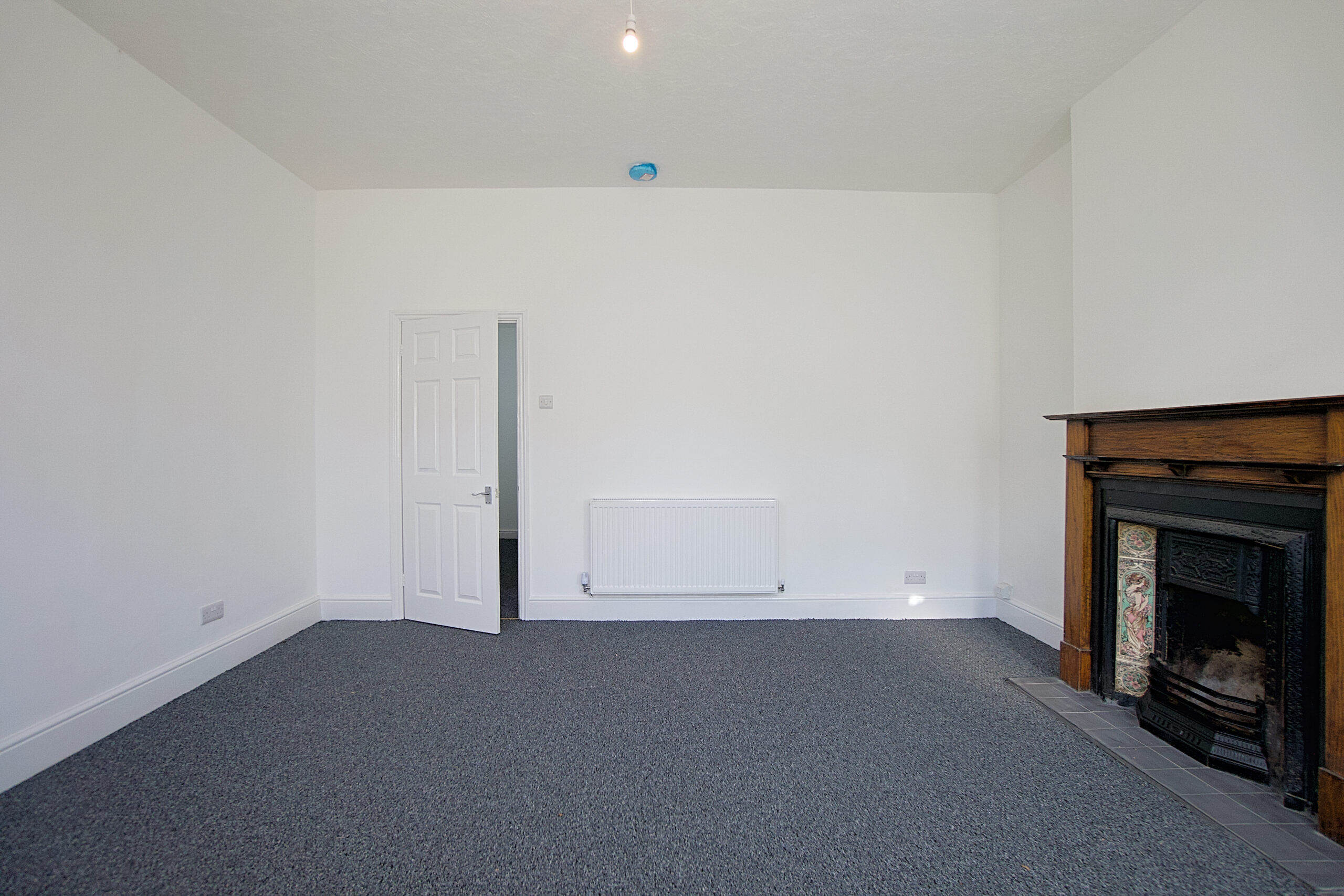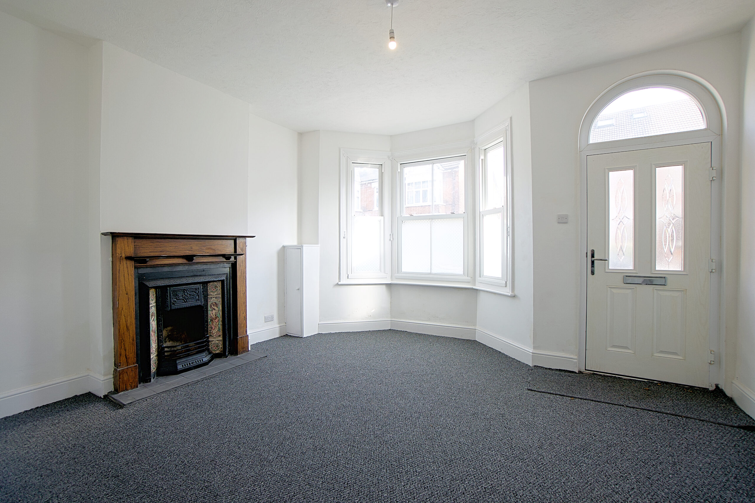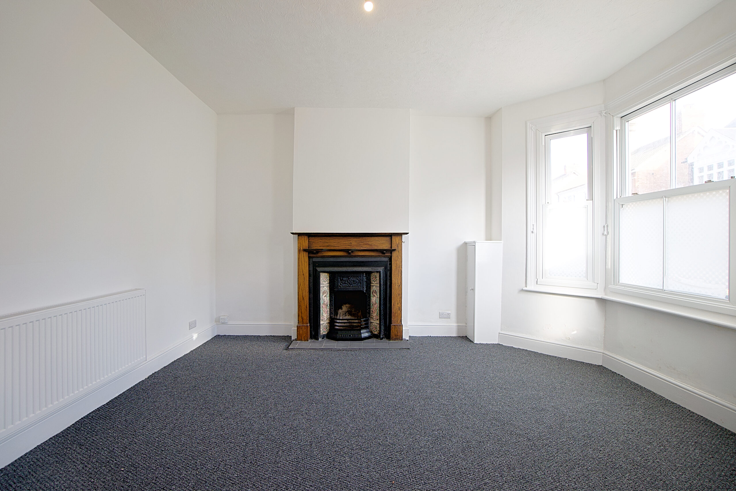 The ground floor flat has its own entrance at the front of the building. This opens into the living room. A wonderful size room with lovely working open fireplace and bay window to the front.