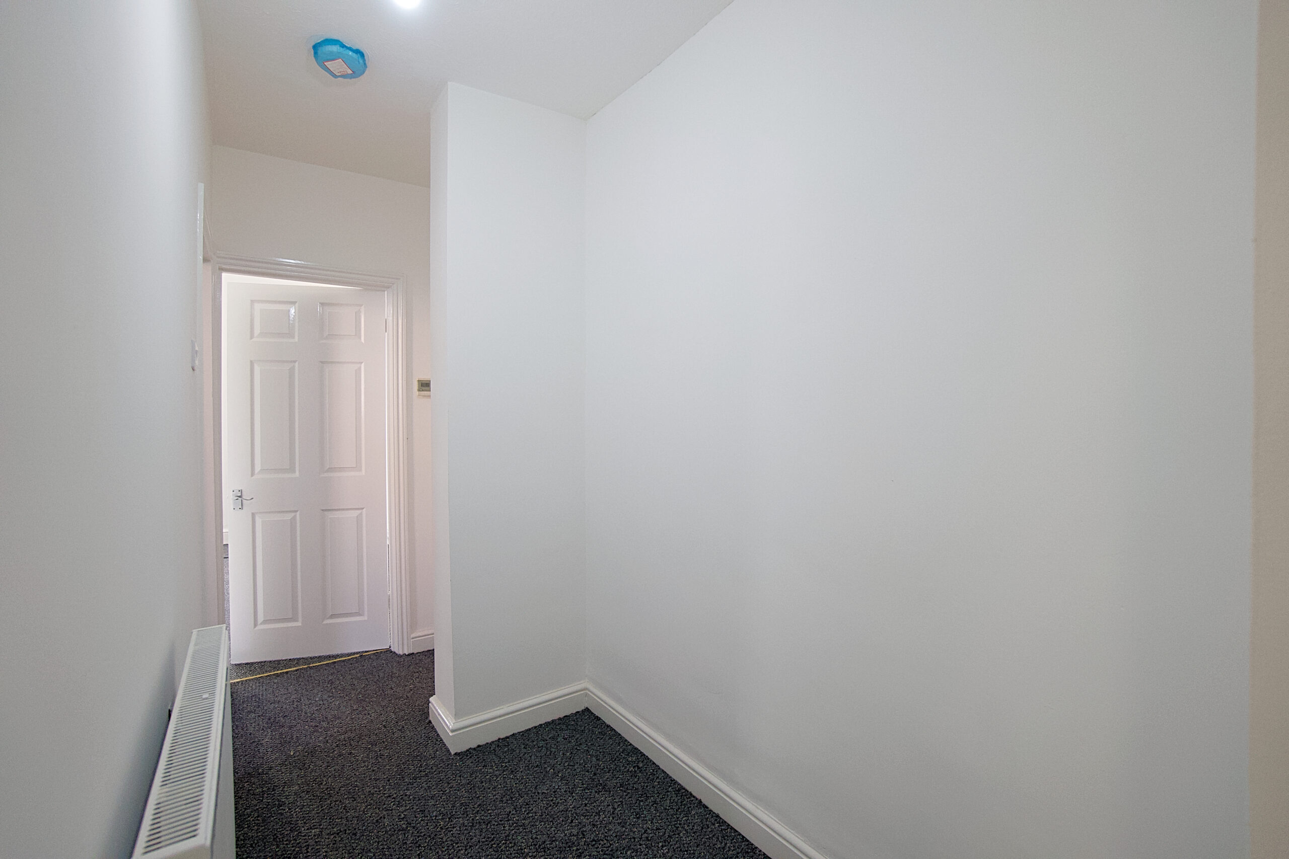 There is a good size hallway, with potential for additional storage cupboards as it is wide. Bedroom one leads off the hallway. A double room with built in wardrobe.