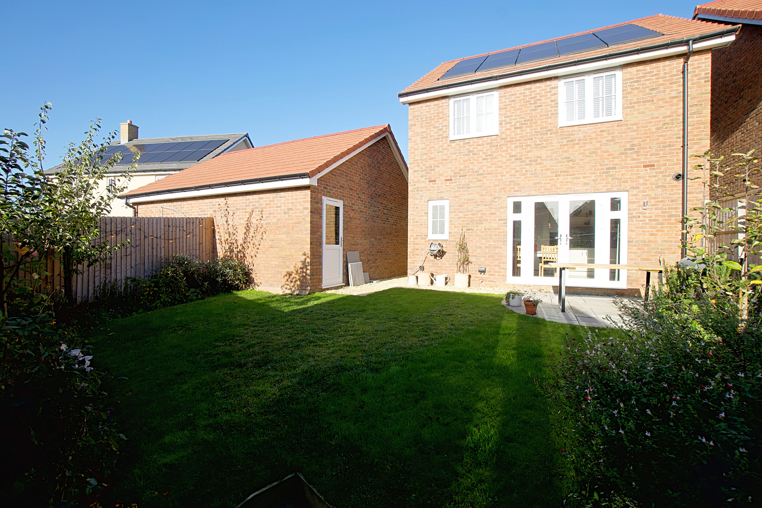 Enjoy a south facing garden plot and beautiful three double bedroom detached property, with ensuite, driveway and large garage. The immaculate house is only three and half years old.