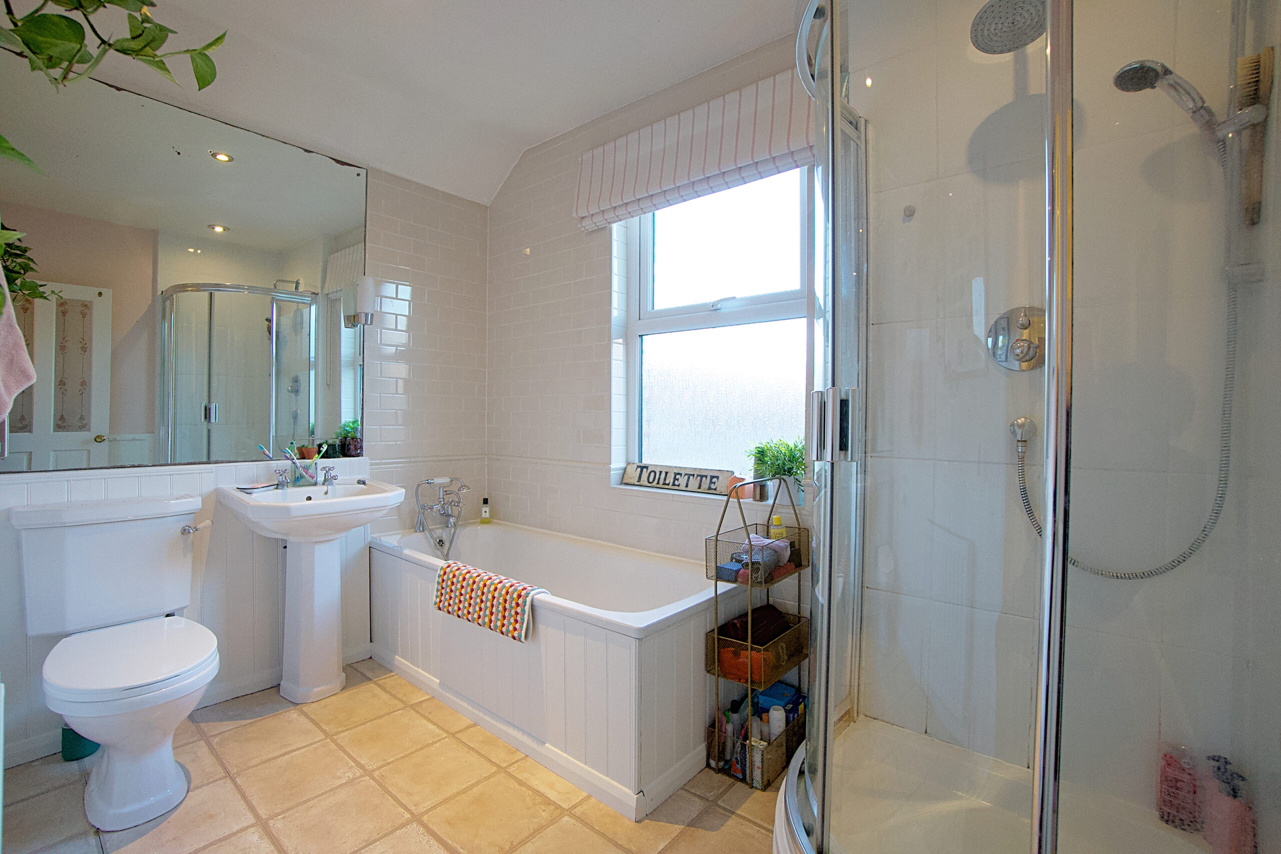 Bedroom two has a fireplace and is a good double bedroom. There is a further large single bedroom, currently a study and a four piece bathroom with tongue and groove panelling, completing this floor.